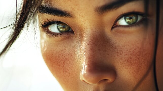 High resolution photo of freckles on lady face