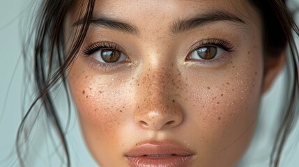 Woman freckles skin beauty natural make up portrait casual happy smile