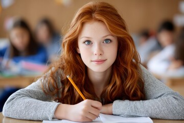 Smiling red-haired girl with glasses, artistic watercolor portrait