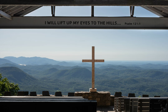 Fred W. Symmes Chapel, "Pretty Place", Cleveland, South Carolina.  Open-air chapel on top of Stone Mountain.