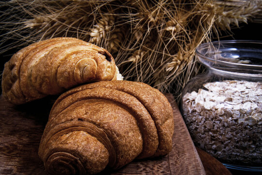 Beautiful view of a colorful breakfast table with beautiful decorations along with delicious dessert cakes with a black background.