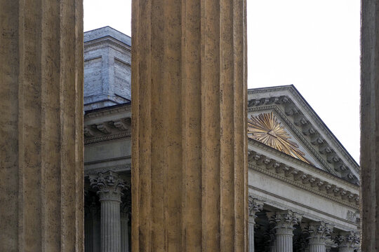 All-Seeing Eye, Masonic symbol depicted on the facade of the Kazan Cathedral in St. Petersburg, Russia