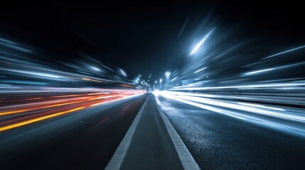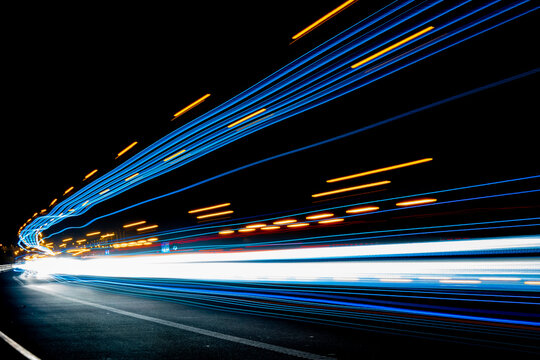 Stunning photo of car motion trails. Speed light streaks background with blurred fast moving light effect, Racing cars dynamic flash effects city road with long exposure night.