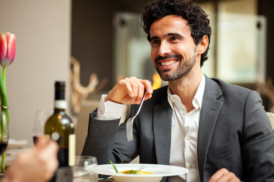 Close-up of delicious french crepe with powdered sugar and fruit garnish
