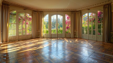 Elegant Empty Room with French Doors and Sunlight