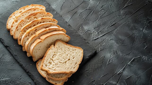 sliced baguette with sesame seeds on dark boards. light through the blinds