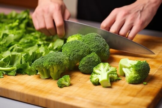 diced fresh broccoli on a wooden board banner