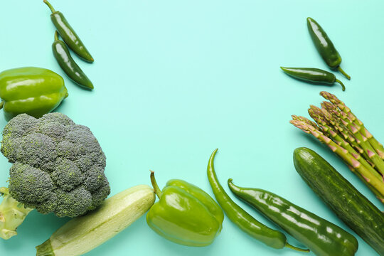 Fresh green vegetables arrangement featuring asparagus and broccoli