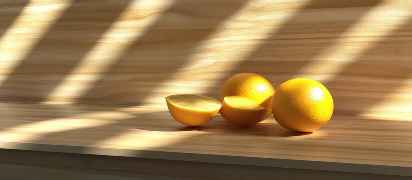 Sliced lemon on rustic wooden surface