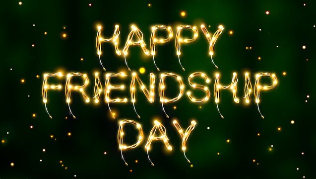 Sparkling lights form happy friendship day greeting on dark background