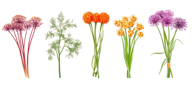 Set of Hydrangea macrophylla Light Crimson frontal view on transparent background