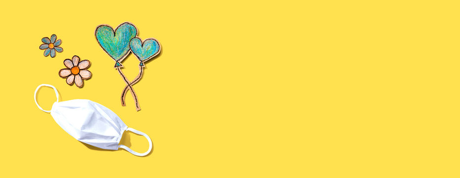 Medical worker appreciation theme with hearts, flowers and a face mask