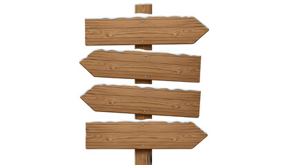 Wooden Directional Signpost with Three Blank Arrow Signs and Snow Isolated on Transparent Background PNG