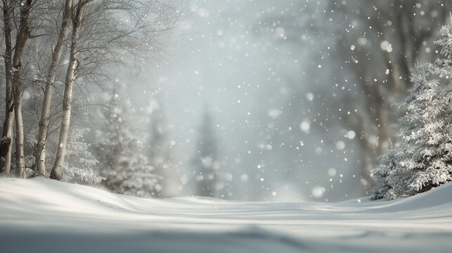 Tranquil snow-covered forest path in winter