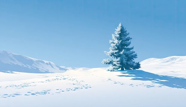 Serene snowy landscape with majestic evergreen trees