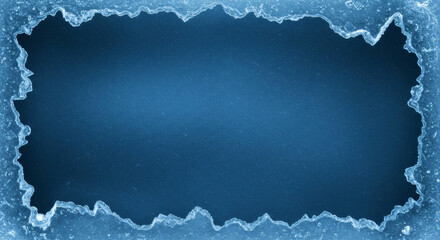 Intricate frozen ice crystal frame borders a dark, cool blue textured backdrop creating a stunning wintery or frosty effect for creative design projects