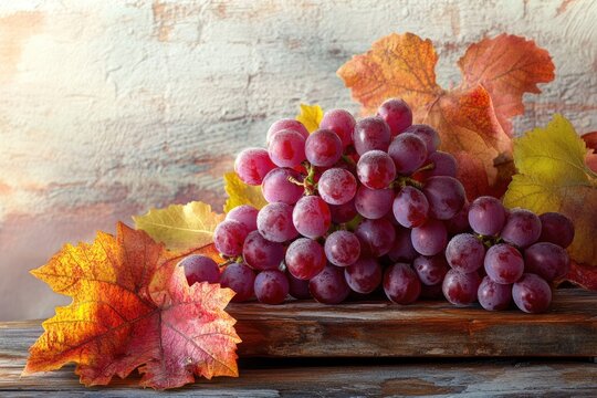 Fresh, dew covered grapes glisten soft light, showcasing their vibrant colors and inviting texture. beauty of nature is captured this close up