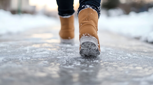 Navigating a slick path with sturdy boots, each step a mindful dance on the frosted ground. Reflective ice mirrors the sky, transforming an ordinary walk into a winter adventure.