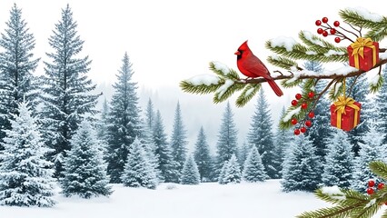 Framing frosted evergreen branches creating pale winter center for holiday design