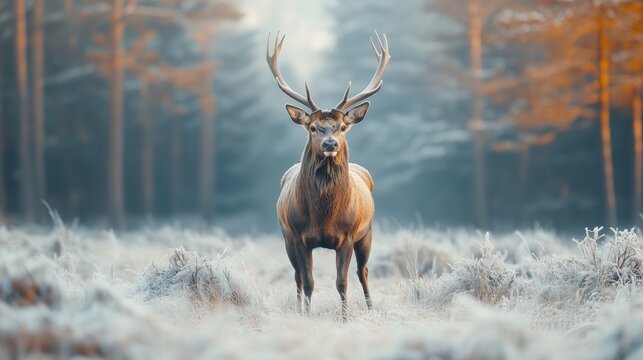 A frosty landscape covered with ice crystals at dawn conveys stillness, purity, and the quiet renewal of a winter morning.