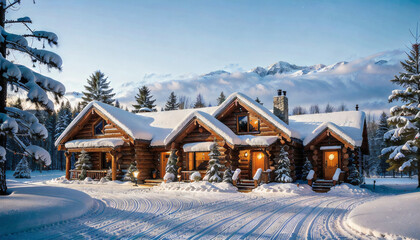 Winter wonderland Snow-covered pine forest against an outdoor backdrop
