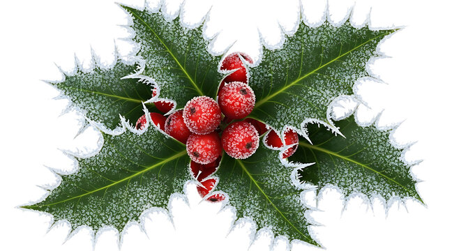 Iced holly with berries on transparent background to celebrate winter holidays