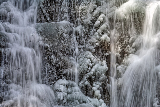 Frozen waterfall captured in winter freeze