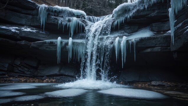 Mesmerizing frozen waterfall with cascading flows