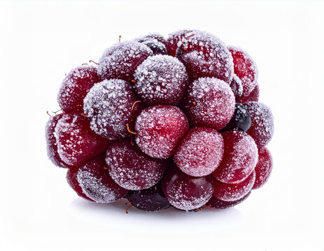 Frozen Red Grape Cluster on White Background