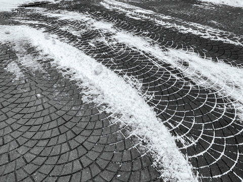 Close-up shot of a concrete surface covered in snow, ideal for winter-themed designs or architecture images.