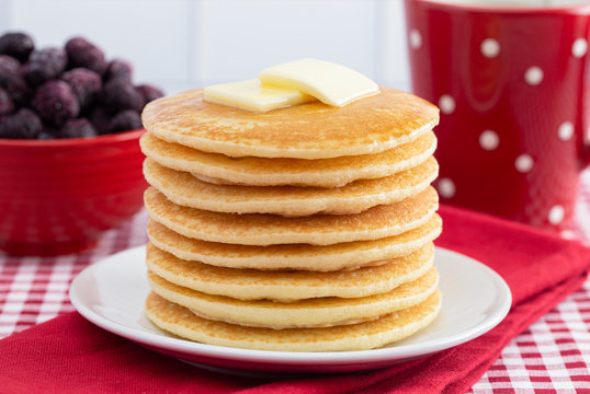 A Stack of Freshly Made Pancakes on a Gingham Tablecloth