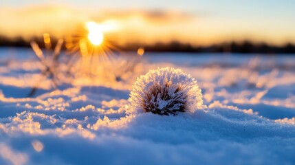 Spiky ball frozen in winter stillness with golden hour light casting long shadows