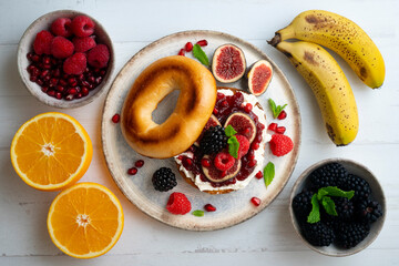 Healthy lunchboxes with vegan snacks and school supplies on pastel background