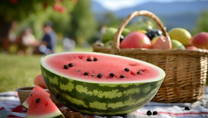 Romantic outdoor picnic couple enjoying fruit and relaxation