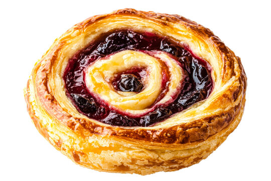 Fruit danish pastry roll, blueberry jam and cheese, cut out transparent