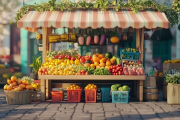 A vibrant farmer's market stand with fresh vegetables and fruits.