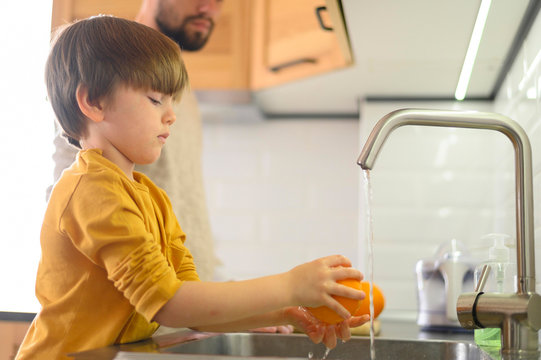 Fruit washing machine in the bright and comfortable kitchen of the apartment