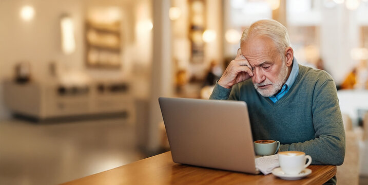 Senior man feeling stressed while using laptop at home