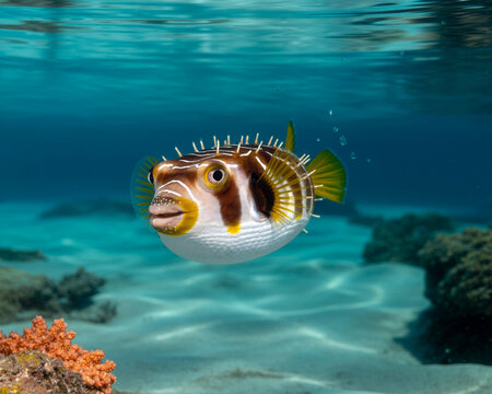 Pufferfish Floating in Tropical Water fugu balloonfish