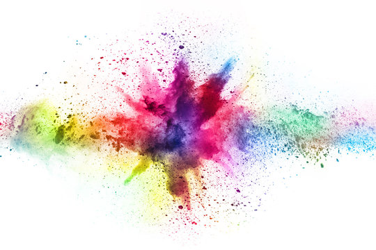 abstract powder splatted background. Colorful powder explosion on white background. Colored cloud. Colorful dust explode. Paint Holi.