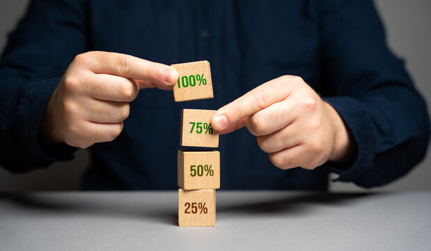 Complete 100 percent of the work. Evaluation of the quality of services and satisfaction. Make an assessment. Reach the highest level. Completion of the mission task. Max rate. Maximum efficiency.