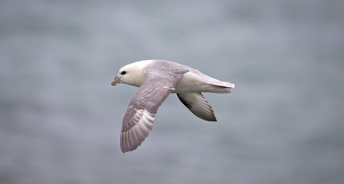 Northern Fulmar (Fulmarus glacialis). flying over the Atlantic Ocean near Iceland