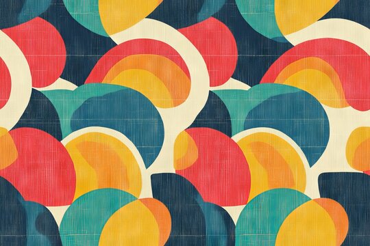 Retro seamless pattern with colorful geometric shapes nostalgic vintage background design for 1970s and 1980s inspired aesthetic, perfect for digital art, textile prints, and home decor