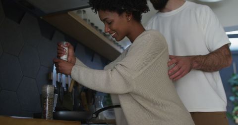 Couple having fun preparing healthy fruit snacks together in modern kitchen