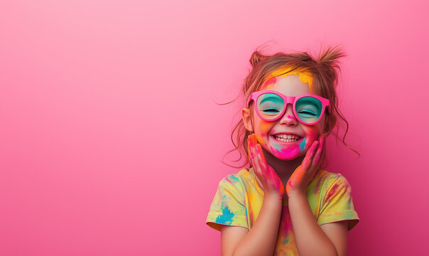 Joyful child waving with metallic glove beside friendly fun buddy robot for playtime