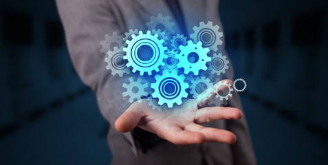 Hand holding gears in his hand