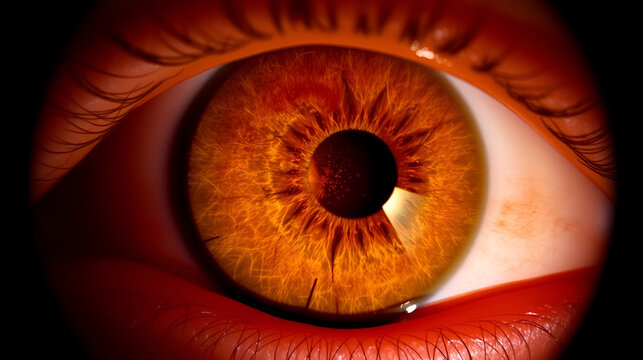 View of optic disc during examination of retina while holding 20 diopter lens. A routine fundus screening method during eye exam.