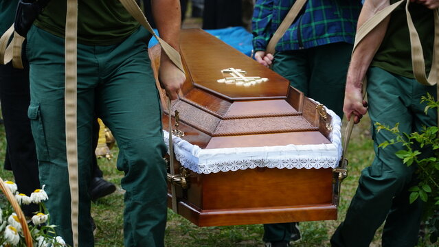 A fragment of the funeral ceremony, when the undertaker seals the zinc coffin
