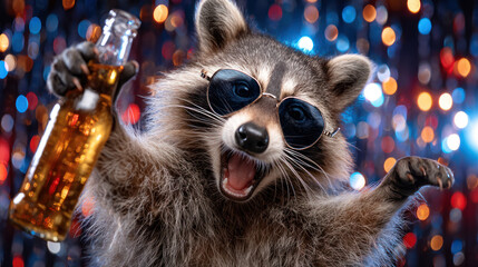 Humorous raccoon with his morning coffee sitting table in city cafeteria Generative AI