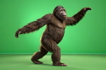 Gorilla walking on green screen with arms outstretched primate animal